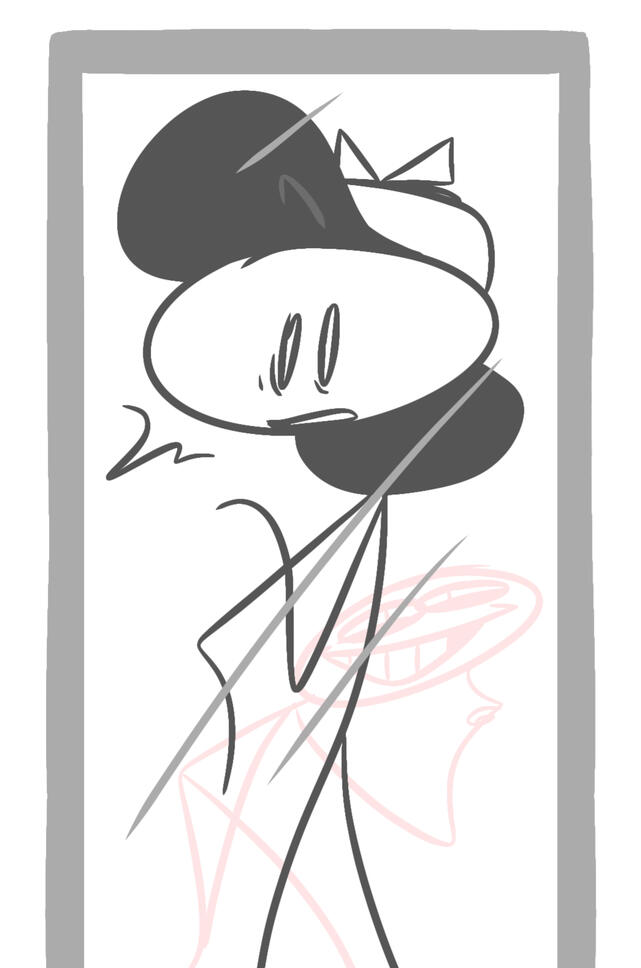 you ask Scientist if they've seen a red stick figure in the mirror before. Scientist says they haven't, but they've heard of such a person.