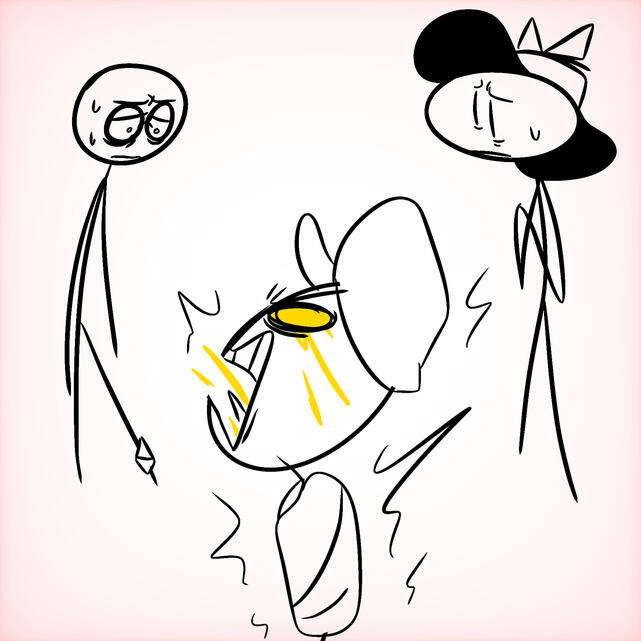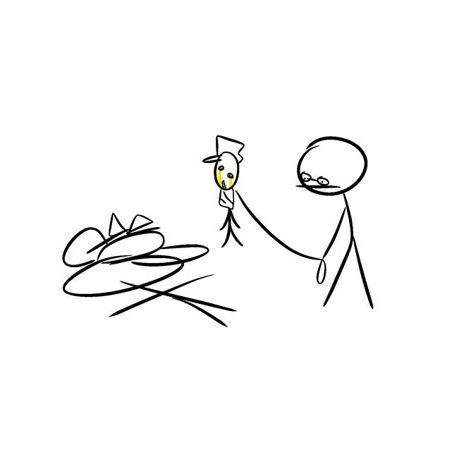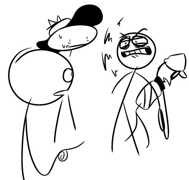 you ask if they've seen a red stick figure anywhere, and they respond saying they have, then calling him a sadistic creator. Scientist scoffs at the idea of a deity being responsible for their existence.you ask Person if they'd like to help find him, but they say you'll die if you reach him... and that you'll die no matter what you do, so nothing matters, therefore Person is now apart of your party.